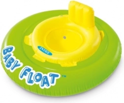 Siedzisko z otworami na nogi i dmuchanym oparciem utrzymuje dziecko we właściwej i wygodnej pozycji, aby czuło się pewnie podczas pierwszych zabaw w wodzie.