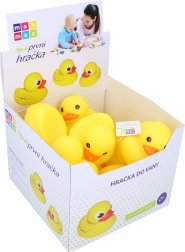 Urocza gumowa kaczuszka o wielkości 9 cm jest idealna na pierwsze wodne zabawy niemowląt i maluchów. Jej ergonomiczny kształt doskonale leży w małej dziecięcej dłoni, a bezpieczny skład bez ftalanów, BPA i metali ciężkich zapewnia spokojną zabawę w wannie i w baseniku.