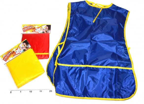 Praktyczny dwustronny fartuszek dla dzieci do zajęć plastycznych o wymiarach 55 × 40 cm. Dzięki wiązaniu w pasie świetnie się trzyma, z przodu ma 3 funkcjonalne kieszonki i niezawodnie chroni ubranie przed farbami i zabrudzeniami. Koniec z poplamionymi koszulkami i spodniami podczas malowania przez Twoje pociechy.