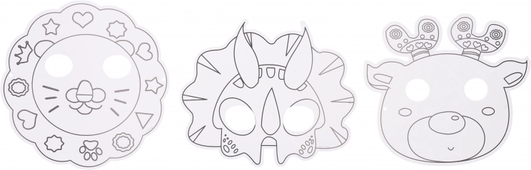 Zabawna maska do kolorowania o wymiarach 22,5 × 20,5 cm z 4 pisakami w zestawie oraz w 6 różnych wzorach – idealna do tworzenia, zabawy i na przyjęcia.