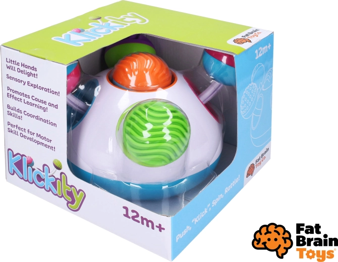 Fat Brain Klickity to pomysłowa zabawka motoryczna, która pobudza naturalną dziecięcą ciekawość. Połączenie kontrastowych kolorów, przyjemnych faktur oraz prostych funkcji mechanicznych (naciskanie, wysuwanie, obracanie) zapewnia długie minuty skupionej zabawy i rozwoju umiejętności.