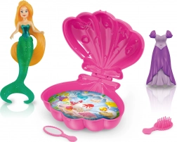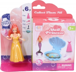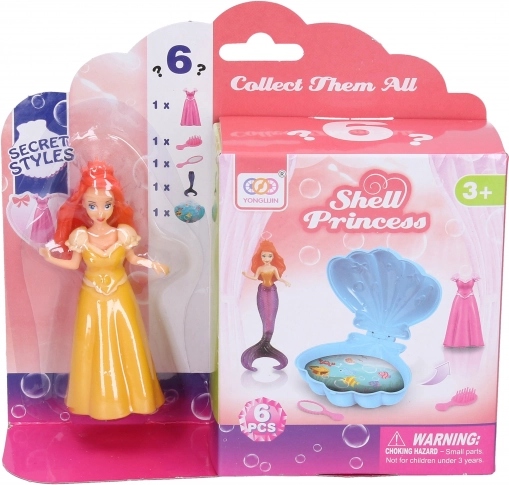 Odkryj zaczarowany podwodny świat z uroczą zabawką syrena z muszlą o wysokości 9,5 cm. Zestaw zawiera syrenę, otwieraną muszlę, drobne sukienki, lusterko i grzebień. Dostępne są 3 kolorowe wersje muszli – żółta, niebieska i fioletowa.
