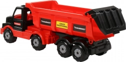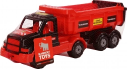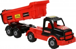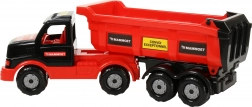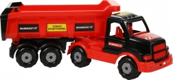 Pojemna skrzynia umożliwia łatwe załadunek i wyładunek ładunku – idealna do zabawy na budowie z piaskiem lub klockami.