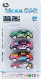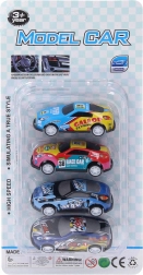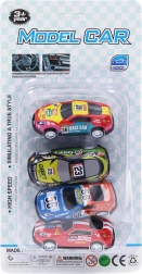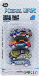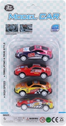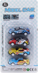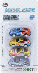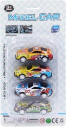 Odkryj zabawę z naszą zestawem czterech autek, każde o wielkości 6,5 cm, poruszające się na wolnych kołach.