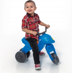 Jeździk Super Bike maxi wyróżnia się prostą obsługą i pewnością trzech kół, dzięki czemu mali kierowcy czują się pewnie na każdej nawierzchni. Kompaktowe wymiary ułatwiają przenoszenie i przechowywanie, więc świetnie sprawdzi się zarówno w domu, jak i na zewnątrz.