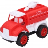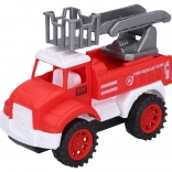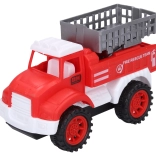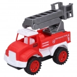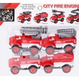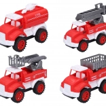 Ten zestaw zawiera cztery czerwone strażackie autka o długości 10,5 cm, każde reprezentuje inny typ pojazdu strażackiego: