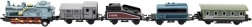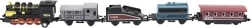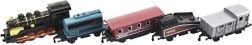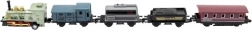 Za zabawę odpowiada napęd typu pull-back – wystarczy pociągnąć pociąg do tyłu i patrzeć, jak rusza do przodu. Do wyboru są 4 wersje kolorystyczne z różnie zaprojektowanymi wagonami, co pobudza wyobraźnię i kolekcjonerską pasję.