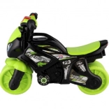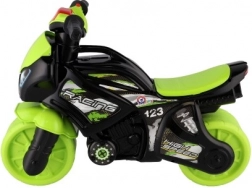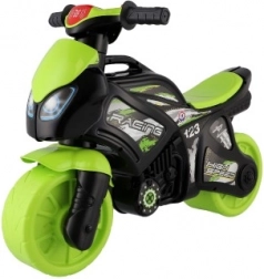 Atrakcyjna zielono-czarna kolorystyka i napisy 'Racing' podkreślają sportowy wygląd motorka.