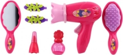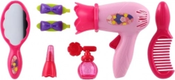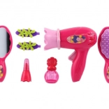 Zestaw zawiera wszystkie niezbędne narzędzia dla małej stylistki, w tym suszarkę i piękne dodatki do zabawy we fryzjerskie aktywności.