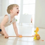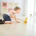 Ta piękna drewniana kaczuszka marki Classic World to idealna zabawka dla dzieci już od 12 miesięcy. Podczas ruchu stuka łapkami o podłogę, co wywołuje u dziecka radosny śmiech. Dzięki cichym kółkom zabawka nie zakłóca spokoju pozostałych domowników.