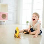Dzięki cichym kółkom zabawka nie przeszkadza w trakcie ruchu i jest wykonana z trwałych materiałów.