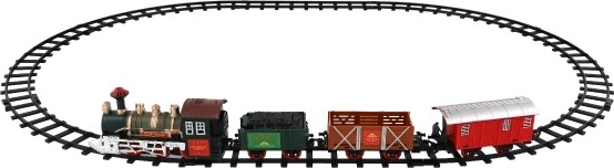 Opakowanie zawiera 8 sztuk torów, co umożliwia stworzenie okręgu o wielkości 107 cm. Tor składa się z 6 sztuk zakrętów i 2 sztuk prostych torów. Do pracy potrzebne są 2 x AA baterie do lokomotywy (nie są częścią zestawu).