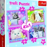 Dziecięce puzzle 4w1 z wesołymi kociętami oferują cztery oddzielne układanki dla małych miłośników kotów. Każdy obrazek ma wymiary 285 × 205 mm i różną liczbę elementów (35, 48, 54, 70), więc zabawę będą mieć zarówno młodsze, jak i starsze dzieci. Wyprodukowano w Polsce z ekologicznych materiałów, rekomendowane od 4 lat.