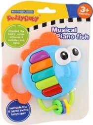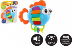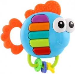 Muzyczna grzechotka i gryzak w kształcie rybki rozwija zmysły maluszka dzięki dźwiękom, światłu i kolorowemu wzornictwu. Dziecko może naciskać klawisze i odkrywać melodie lub pojedyncze tony, a klawisze delikatnie świecą i zachęcają do zabawy.