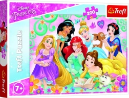 Odkryj magiczny motyw księżniczek z wysokiej jakości puzzlami Trefl. Elementy precyzyjnie do siebie pasują i po ułożeniu tworzą kolorowy obrazek o praktycznych wymiarach 48 × 34 cm, który ucieszy wszystkie małe miłośniczki bajek.