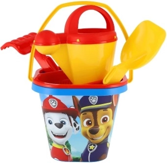 Zakochasz się w zestawie do piasku z motywem Psiego Patrolu! Zabawki do piasku przydadzą się całej rodzinie na wakacjach nad morzem, na placu zabaw lub w ogrodzie. Zestaw zawiera wiaderko, foremkę, grabki z łopatką, konewkę oraz sitko.