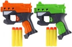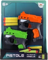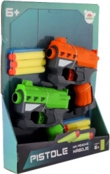 Ten zestaw marki Teddies zapewnia bezpieczną, dynamiczną zabawę dla dzieci i rodzeństwa. Miękkie piankowe naboje łatwo wkłada się do lufy, wystarczy ręcznie naciągnąć i wycelować. Dzięki kompaktowemu rozmiarowi 12 cm pistole wygodnie leżą w dłoni nawet młodszym dzieciom, a zabawa może rozpocząć się w kilka sekund.