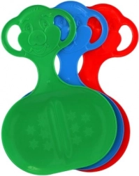 Ślizgacz jest dostępny w trzech żywych kolorach: zielonym, niebieskim i czerwonym. Jego wymiary to 33 x 48 cm, co czyni go doskonałym wyborem dla dzieci w wieku od 3 lat, które chcą wyjść na dwór i zjechać z każdego napotkanego wzniesienia.