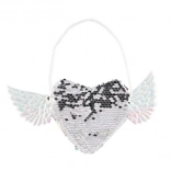 Dodaj swojemu strojowi niepowtarzalny wygląd z tą magiczną torebką, która ma kształt serca i skrzydła po bokach. Zmieniaj kolor cekinów według nastroju - wybierz pomiędzy elegancką srebrną lub zabawną różowo-niebieską kombinacją. Torebka jest idealna do przechowywania drobiazgów, które chcesz mieć zawsze pod ręką.
