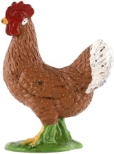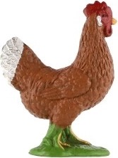 Ta szczegółowo wykonana figurka kury (kura domowa) wiernie oddaje kształt ciała, fakturę piór oraz typowe ubarwienie z białymi akcentami na ogonie i czerwonym grzebieniem. Dzięki kompaktowemu rozmiarowi ok. 4 cm i zielonej podstawce łatwo ją umieścić na półce, w dioramach, modelowych farmach czy szkolnych projektach.