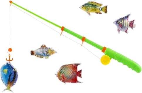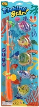 - 1× wędka z magnesem, 5× trójwymiarowa kolorowa rybka