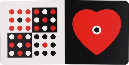 Noworodki widzą tylko na krótką odległość i początkowo rozróżniają jedynie czarny i biały kolor. Ta książeczka jest zaprojektowana tak, aby przyciągać ich uwagę i wspierać ich rozwój. Zawiera obrazki z wysokim kontrastem i stopniowo wprowadza kolor czerwony, żółty, niebieski i zielony, co pomaga poprawić ich zdolność do rozróżniania szczegółów.