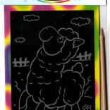 Obrazek zawiera spodnią tęczową warstwę oraz plastikowy rysik do zdrapywania, co sprawia, że praca z nim jest bezpieczna także dla młodszych dzieci.