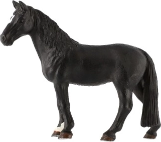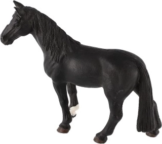 Ten czarny koń został przedstawiony z dużą dbałością o szczegóły, w tym grzywa i ogon, co dodaje realistycznego wyglądu.