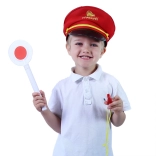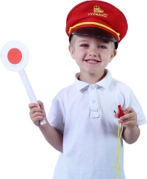 Ten zabawny zestaw dyżurnego ruchu jest świetny dla wszystkich małych i większych miłośników kolei. Dzieci łatwo wcielą się w rolę, założą stylową czerwoną czapkę z haftem, zagwiżdżą w gwizdek i uniosą lizak sygnałowy – a pociąg może ruszać! Doskonały do rozwijania wyobraźni, umiejętności społecznych i zabaw tematycznych.