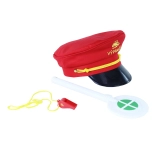 - Czerwona czapka z haftem, gwizdek, lizak sygnałowy