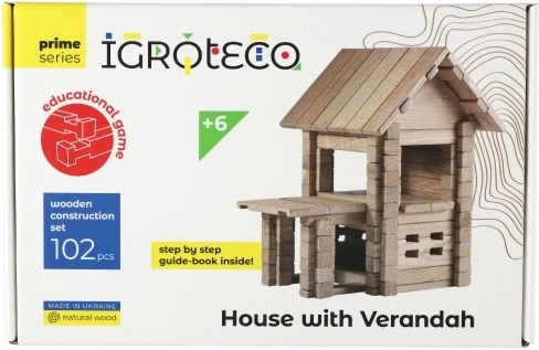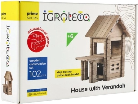 Zestaw konstrukcyjny drewniany dom 102 elementy w pudełku 28x18x7 cm