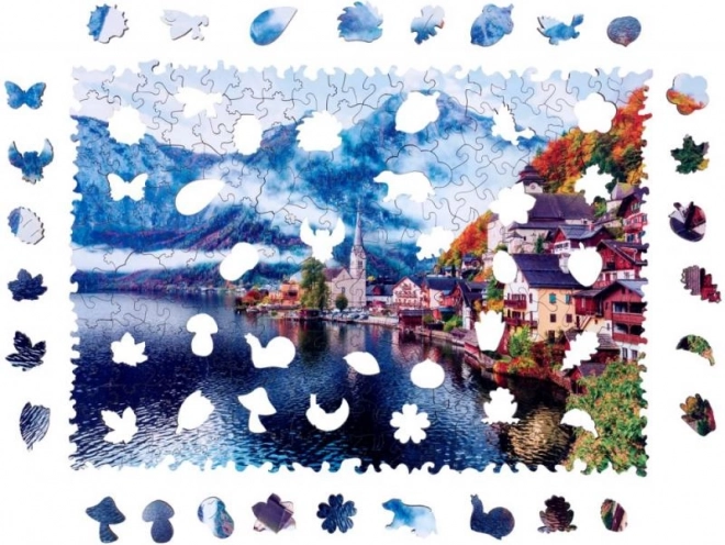 Ciesz się pięknem austriackiego jeziora Hallstatt z tym precyzyjnie wykonanym drewnianym puzzle o 250 częściach. Każda część jest laserowo wycinana z twardego drewna bukowego i oferuje gładkie krawędzie bez drzazg.