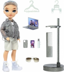 Odkryj świat mody z lalką RAINBOW HIGH Aiden Russell w fioletowym stylu. Około 22 cm wysokości, lalka wyróżnia się dopracowanymi detalami strojów i możliwością pozowania dzięki ruchomym kończynom. Dzieci mogą łączyć poszczególne elementy i tworzyć niezliczone outfity.