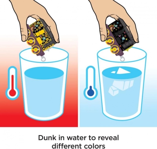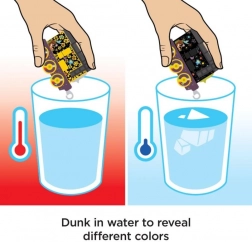 Zanurz lokomotywę w ciepłej lub zimnej wodzie i obserwuj natychmiastową przemianę barw. Efekt można powtarzać w kółko i nigdy się nie nudzi.
