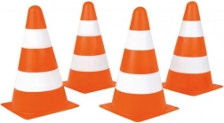 Cztery pomarańczowe pachołki są idealne do zabawy z piłką, samochodzikami lub jako pomoc przy naprawach. Stwórz z nimi przestrzeń do aktywności sportowych lub oznacz strefę ratunkową.