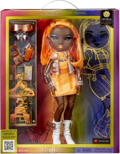 Odkryj urok modowej lalki Rainbow High Michelle St. Charles, która jest wyjątkowa nie tylko dzięki swoim żywym pomarańczowym dodatkom, ale także stylowemu ubiorowi. Ma około 22 cm wysokości i jest idealna dla dzieci od 6 lat. Ta lalka nie tylko rozwija wyobraźnię, ale także stanowi świetny prezent dzięki opakowaniu o wymiarach 8.1 x 20.3 x 30.5 cm.
