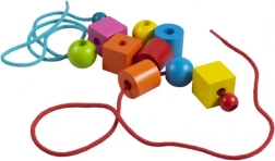 W zestawie znajdują się wytrzymałe sznurki do wygodnego i bezpiecznego nawlekania, które rozwija koordynację i cierpliwość.