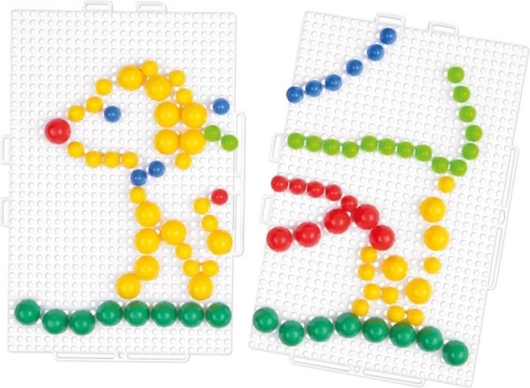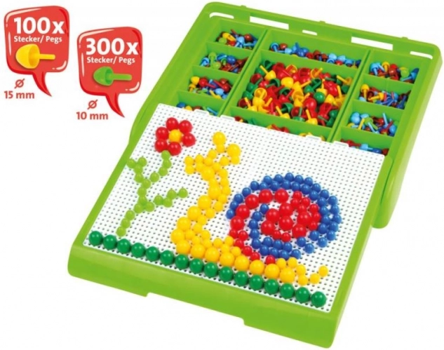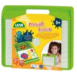 Przenośny kuferek z mozaiką marki Lena oferuje niezliczone możliwości do zabawnej i edukacyjnej gry. Tablica będąca częścią zestawu umożliwia kreatywne wkładanie kołeczków w mozaikowe wzory, co wspiera rozwój wyobraźni, koncentracji i małej motoryki. Zestaw zawiera: