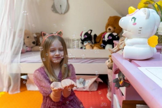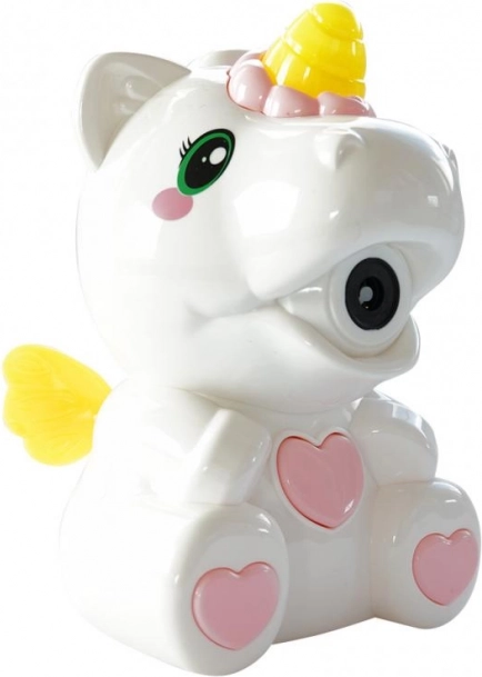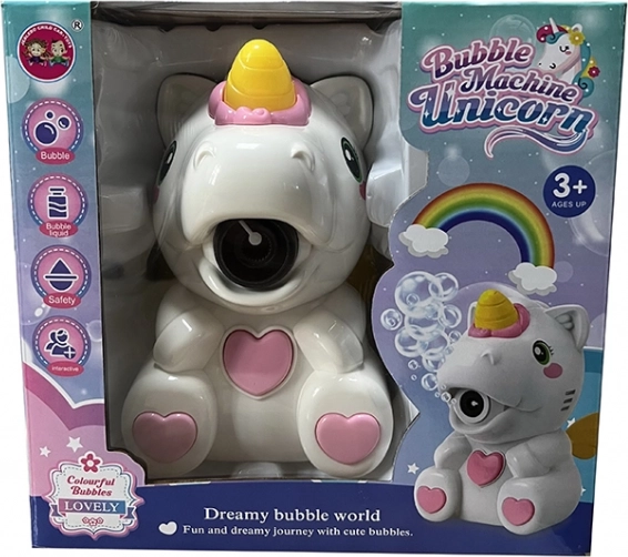 Maszyna do baniek w kształcie jednorożca zapewni ci prawdziwą lawinę baniek gdziekolwiek zechcesz. Zasilana bateriami i bardzo łatwa w użyciu.