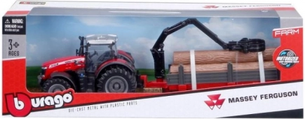 BRUDER traktor MASSEY FERGUSON 7480 z ładowaczem czołowym i przyczepą do kłód