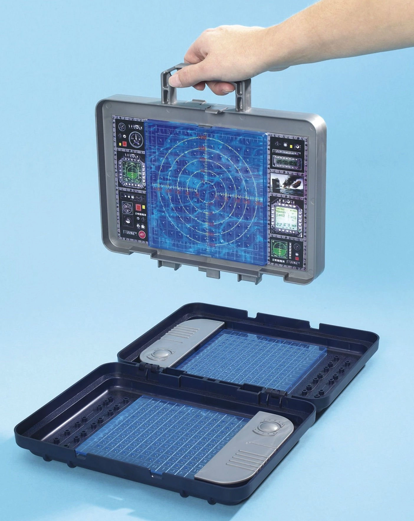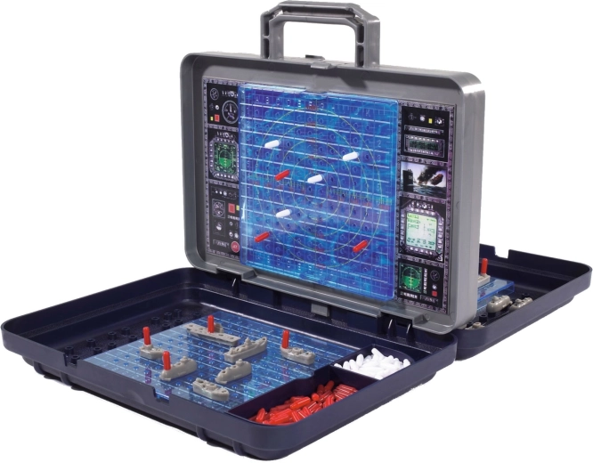 Sercem zestawu jest wyjmowana pionowa ścianka przypominająca radar, która oddziela obie plansze. Zaznaczysz na niej trafienia i pudła, a jednocześnie zapewnisz, że gracze nie widzą swojego rozstawienia statków. Zintegrowane przegródki w walizce utrzymują wszystkie elementy w porządku.
