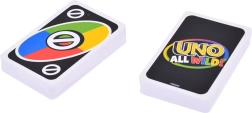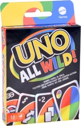 Przeżyj jeszcze dziksze UNO! W edycji UNO All Wild! każda karta to joker, więc rozgrywka jest szybka, emocjonująca i nieprzewidywalna. Nowe karty akcji zmieniają przebieg gry i zapewniają mnóstwo zwrotów akcji. Idealna gra rodzinna i imprezowa dla 2–10 graczy od 7 lat.