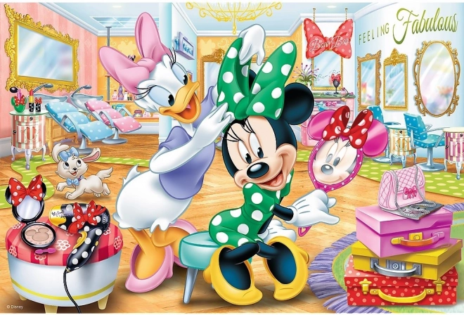 Przenieś się do wesołej atmosfery salonu kosmetycznego z ulubionymi postaciami DISNEY – Minnie i Daisy. Puzzle z 100 elementów są idealne dla przedszkolaków i młodszych uczniów, rozwijają motorykę małą, cierpliwość oraz logiczne myślenie. Dzięki wysokiej jakości papierowi o niskich odblaskach elementy łatwo znaleźć i dopasować.