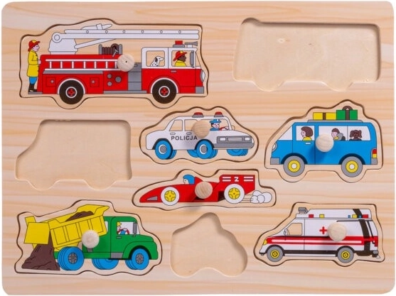 Odkryj zabawną drewnianą układankę z uchwytami z motywem pojazdów, która pomaga dzieciom rozwijać małą motorykę, umiejętności poznawcze oraz rozróżnianie kształtów i kolorów. Dziewięć solidnych elementów z wygodnymi drewnianymi uchwytami łatwo chwycić i umieścić w odpowiednich miejscach – idealne dla małych miłośników aut, pociągów i innych maszyn.