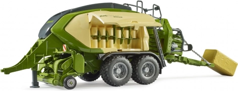 Dzięki odchylanym burtom można podziwiać realistycznie odwzorowany mechanizm i łatwo „dostać się” do czynności serwisowych. Górna klapa pozwala na wkładanie bel, a odłączana stopka podporowa i solidne podwozie zapewniają stabilność podczas „pracy” i parkowania. Model jest szeroko kompatybilny z traktorami BRUDER serii 20xx, 21xx, 30xx, 31xx i 40xx, więc znakomicie wpasuje się w każdy farmowy zestaw.