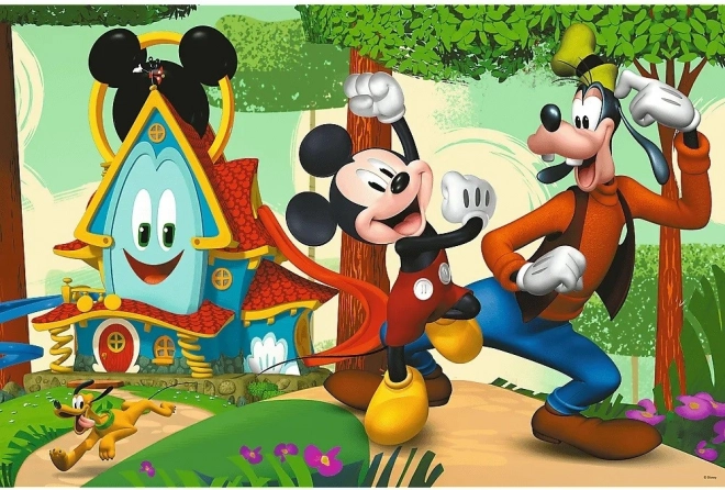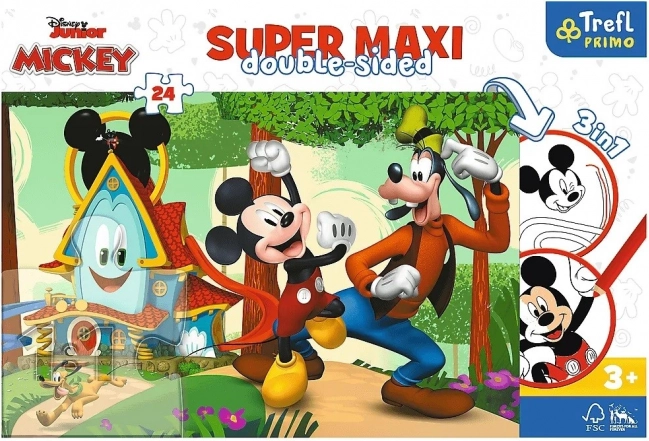 Puzzle Super Maxi 24 Wesoły domek i przyjaciele oferują dzieciom połączenie twórczości, logiki i radości z własnego efektu. Przód przedstawia kolorową ilustrację z MICKEYM i jego przyjaciółmi, a rewers zaskakuje kolorowanką i sprytną grą z elementami kolorowania – dwa razy więcej zabawy w jednym produkcie.