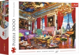 Odkryj urok francuskiej elegancji z puzzlami 3000 elementów – Pałac Paryski. Po ułożeniu powstanie imponujący obraz o wymiarach 116 × 85 cm. Wysoka jakość wykonania z ekologicznych materiałów oraz specjalny papier antyodblaskowy zapewniają komfortowe układanie i perfekcyjne odwzorowanie kolorów. Autorem ilustracji jest Dominic Davison.