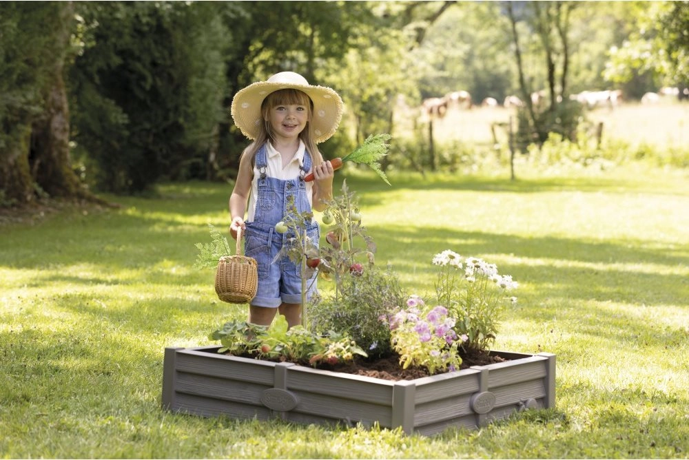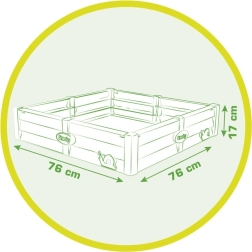 Piaskownica mieści 100 kg piasku lub 70 kg ziemi do uprawy.