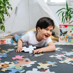 Na tylnej stronie puzzli znajdują się dwie dodatkowe aktywności – kolorowanka i prosta gra z kolorowaniem. Zabawa z puzzlami Super Giant 15 wspiera rozwój manualności, spostrzegawczość i kreatywność dzieci od najmłodszych lat.