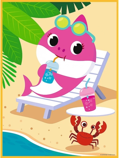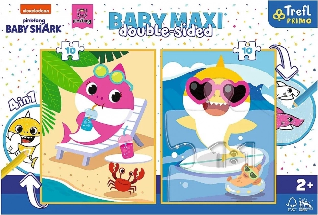 Dwustronne puzzle Baby Shark to doskonała zabawa dla małych dzieci od 2 lat. Każda strona puzzli oferuje inną scenę, co daje do 4 różnych aktywności w jednym produkcie. Po jednej stronie znajdziesz wesołe rekiny na plaży, podczas gdy po drugiej czeka podwodna przygoda, która rozwija ich wyobraźnię.
